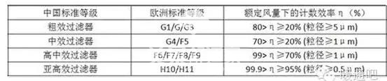 过滤材料常见的从G1到H13不同级别,级别越大风阻越大,过滤精度高,需要定期更换。