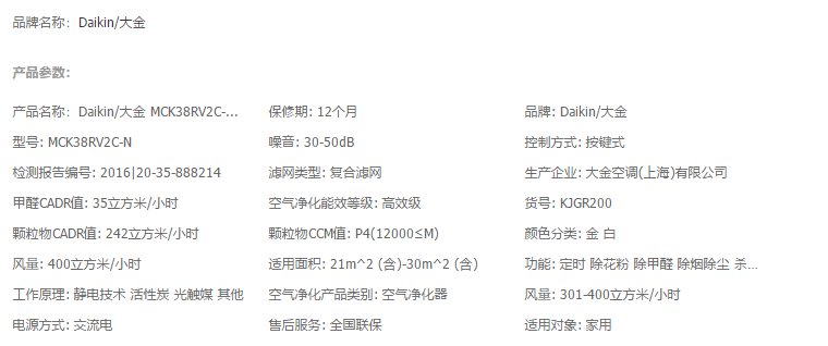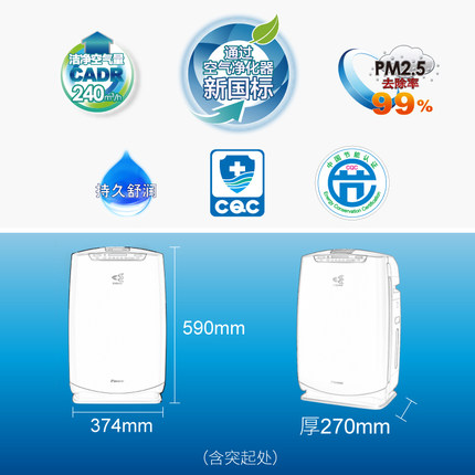 大金空气净化器家用加湿机除雾霾PM2.5除甲醛异味二手烟MCK38RV2C