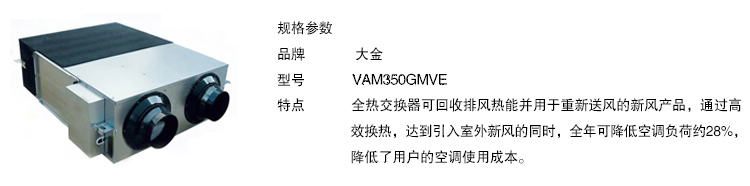 大金全热交换器非过滤系列VAM350GMVE+链风管道套餐