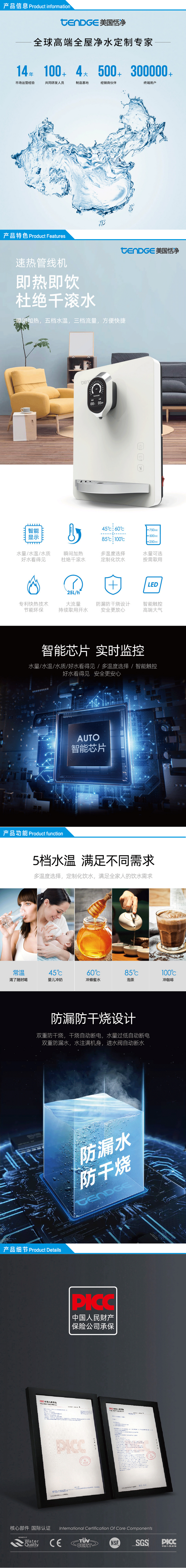 恬净(Tendge)净水器 TG-G8末端壁挂式温热型管线机 即热式饮水机无内胆开水器 土豪金